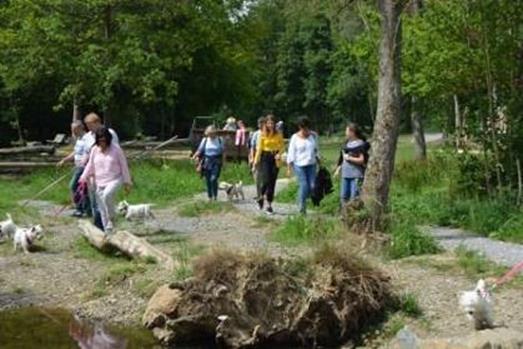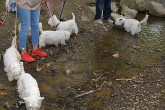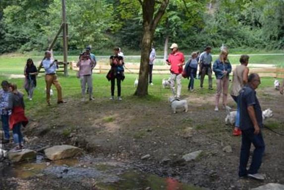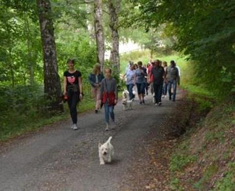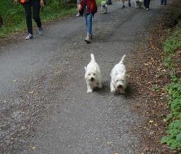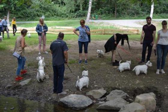 Gegen 14.00 Uhr ging´s dann für die Gäste, die schon eingetroffen waren ins nahegelegene Ausflugsgebiet Bibertal. Hier konnten sich die Vierbeiner nach Herzenslust austoben und sich alle besser kennen lernen. |